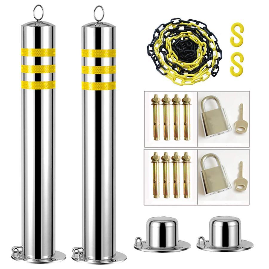 パーキングロックには反射テープが付いており、暗い場所や夜間の視認性を確保します支柱とベースは分離しています。パーキングポールが道路を塞いでいる場合、一時的に柱の部分を取り外すことができます吊り輪は非常にしっかりと溶接されており、吊り輪にチェーンを通しやすくなっています。プラスチック製のチェーンには、最初と最後にプラスチック製のフックがあります。チェーンの長さは約5メートルです。パッキングリスト:私道用2xセキュリティポスト、2xベース、2xロック、2xキー、8xネジ、1xプラスチックチェーン、2xSフック注:駐車場のボラードは重量が重いため、作業中に一部の作業員が地面に置いたままにする場合があります。駐車場柱にわずかな傷やへこみがある場合は、ご了承ください
