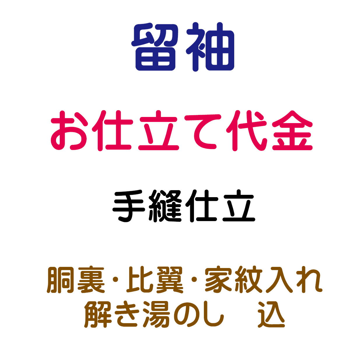 胴裏・比翼・家紋入れ・解き湯のし 込みお仕立代 留袖 袷 手縫い仕立