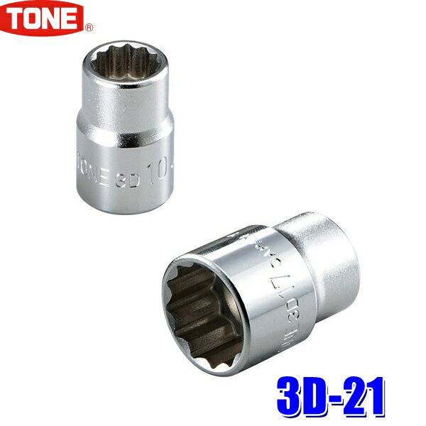 ボルト・ナットの締付け・緩め作業用。スタンダードタイプの対辺12角形状。差し込み後、トルクをかけてもナメにくい。3D-21 TONE トネ 12角ソケット 差込角9.5mm 二面幅21mm