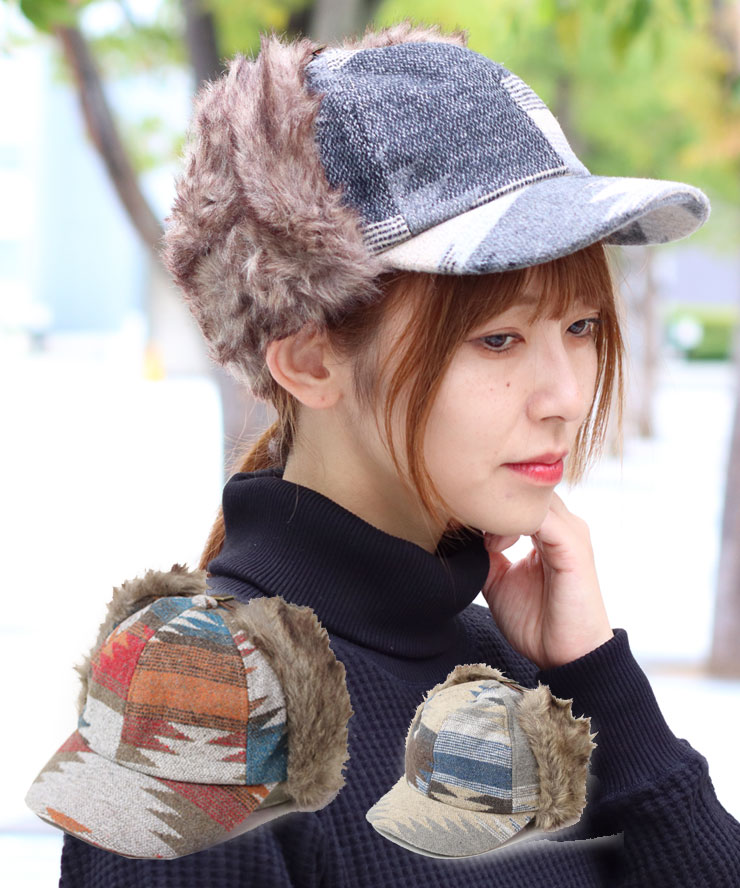 ネイティブ調 ファー帽子 防寒 スキー スノボ お洒落 かわいい【クーポンで30%OFF!10/17 9:59迄】MIZ エスニック ファー フライトキャップ | メンズ レディース 秋 冬 秋冬 冬用 帽子 キャップ フライト帽子 パイロットキャップ パイロット帽子 飛行帽子 耳あて付き 耳当て帽子 耳付き帽子 アビエイターキャップ ロシア帽 あったかい