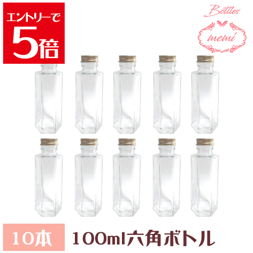 ハーバリウムボトル 10本セット\クーポン配布/ ハーバリウム 瓶 ボトル キット ハーバリウムキット 六角柱 100mlボトル 10本セット 飲料瓶 Atelier memi アトリエメミ