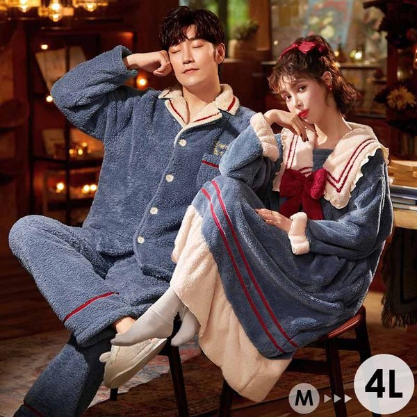 ペア パジャマ もこもこ ぽっちゃり 上下セット ワンピース 冬用 あったか モコモコ 誕生日 大量注文にも対応しています。ペアパジャマ もこもこ 大きいサイズ ペア 部屋着 上下セット ズボン ワンピース セーラー風 パジャマ ルームウェア レディース 冬 メンズ 冬用ペア パジャマ メンズ あったか カップル 誕生日 セット ギフト 結婚祝い プレゼント M L 2L 3L 4L 紺
