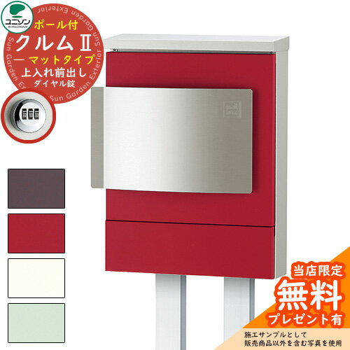 人気の壁付けポスト クルムをポール施工できる!【無料★特典付】郵便ポスト 郵便受け ユニソン 壁付けポスト クルムII マットタイプ(カラーシート仕上げ) ポールセット クルム2 イメージ画像:マットレッド(右開きタイプ ダイヤル錠仕様) 壁掛け ポール建て施工 おしゃれ シンプル 戸建て 玄関 庭