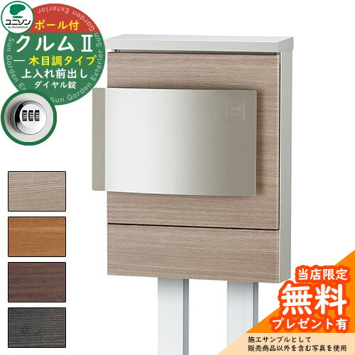 人気の壁付けポスト クルムをポール施工できる!【無料★特典付】郵便ポスト 郵便受け ユニソン 壁付けポスト クルムII 木目調タイプ(木目調シート仕上げ) ポールセット クルム2 イメージ画像:タモ(右開きタイプ ダイヤル錠仕様) 壁掛け ポール建て施工 おしゃれ シンプル 戸建て 玄関 庭 新居