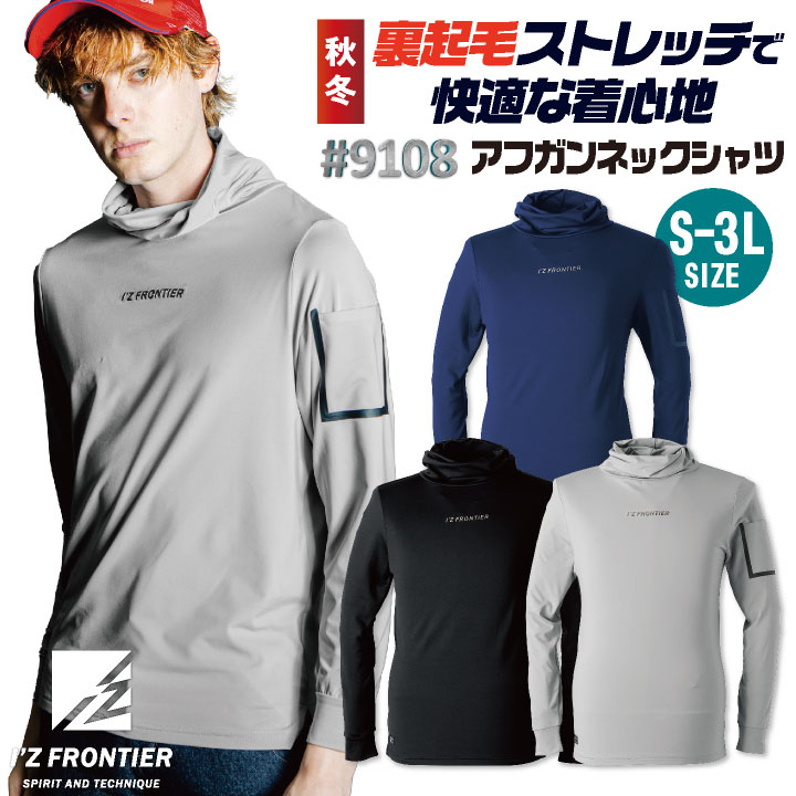 9108 アイズフロンティア 裏起毛ストレッチ長袖アフガンネックシャツ 秋冬 おすすめ 工事現場 建設業 農作業 釣り アウトドア 自転車 バイク ネイビー ブラック グレージュ S M L LL 3Lアイズフロンティア 長袖 アフガンネックシャツ 秋冬 上着 メンズ レディース 裏起毛 ストレッチ 仕事服 作業着 おしゃれ トップス かっこいい I'Z FRONTIER if-9108