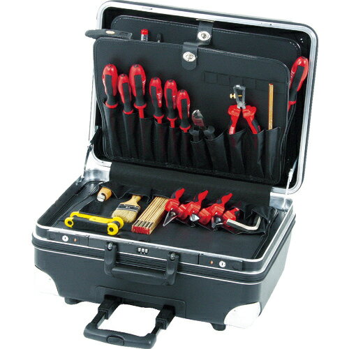 特長:ドイツ製のトップクオリティモデルです。アルミニウム製のコーナーガードが本体を強い衝撃から保護します。人間工学に基づく安定したハンドル付です。3連ダイヤルロックと2つのフリップロックでケースのフタを固定します。付属品のツールプレートは簡単に取り外しできます。ボールベアリング付のキャスターでスムーズに移動できます。用途:工具収納用、工具保管用。仕様:色:ブラック外形寸法(mm)間口:510外形寸法(mm)奥行:290外形寸法(mm)高さ:435有効内寸(mm)間口:470有効内寸(mm)奥行:220有効内寸(mm)高さ:360最大荷重重量(kg):40伸縮式ハンドル・キャスター付TSAロック付材質/仕上:高密度ポリエチレン(HDPE)セット内容/付属品:ツールプレート(3053668019・3053648019):各1枚注意:工具は別売です。 ●代表画像について 商品によっては、代表画像を使用している場合がございます。 商品のカラー、サイズなどが異なる商品をイメージ画像として 使用させて頂いている場合がございます。 必ず、商品の品番と仕様をご確認のうえ、ご注文お願いいたいます。 ●北海道・沖縄・離島・一部地域の送料について 別途追加で送料がかかる場合がございます。 送料がかかる場合は、メールにて送料をご連絡させて頂き、 お客様にご了承頂いてからの手配となります。 ●お買上げ明細書の廃止について 当店では、個人情報保護と環境保護の観点から同封を廃止しております。 お買上げ明細書が必要な場合は、備考欄に「お買上げ明細必要」と 記載お願いいたします。 当店からの出荷の場合は、同封にて発送させて頂きます。 (※メーカー直送の場合は、PDFデータをメールさせて頂きます。) 注意事項 ※商品名に【2個セット】等、数量の明記がない場合は1個での販売となります。