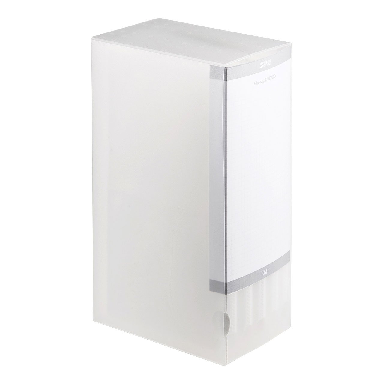 凹凸が少なく柔らかい不織布でブルーレイディスクの収納に対応したファイルケース 収容量:ブルーレイディスク・DVD・CD 104枚 サイズ:約W157times;D102times;H280mm 材質:PP(ケース)、紙(背表紙)