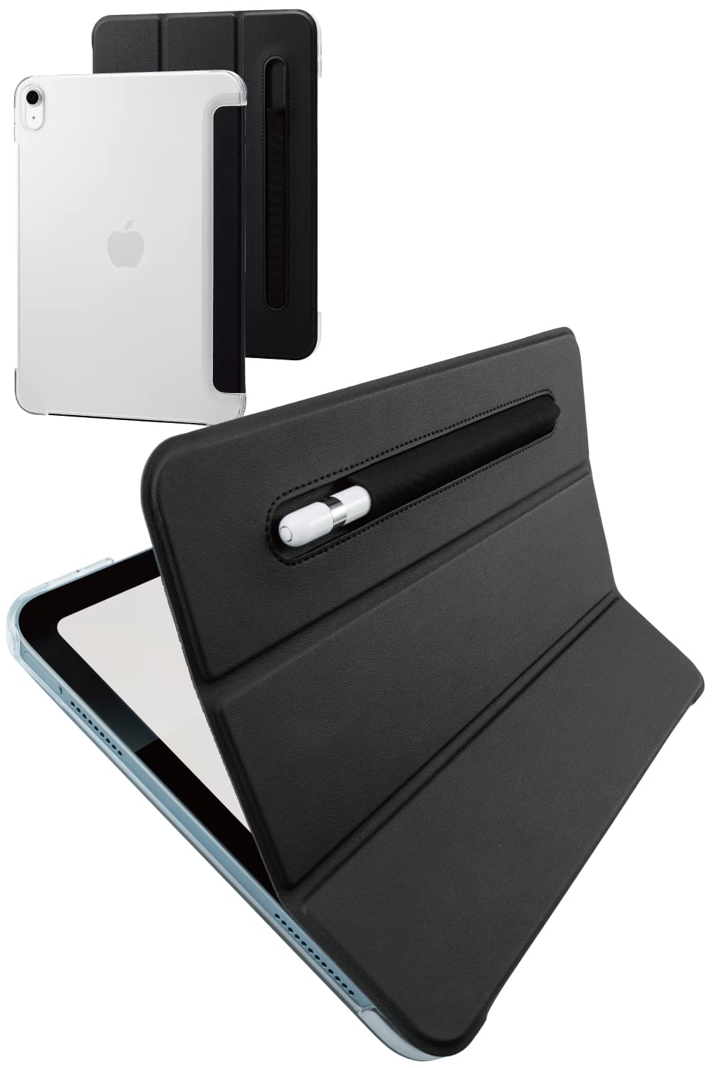 エレコム iPad 10.9 第10世代 (2022年) ケース カバー フラップケース Apple Pencil収納 背面クリア ソフトレザー素材 オートスリープ/ウェイク対応 ブラック TB-A22RWVFPBK