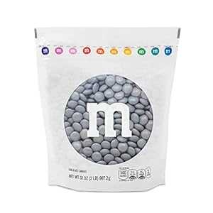 M&M'S シルバーミルクチョコレートキャンディー 2ポンドのM&M'S 再密封パック入り キャンディーバー、結婚披露宴、卒業式、婚約パーティー、デザートテーブル、DIYパーティー記念品に最適 M&M S Silver Milk Chocolate Candy, 2lbs of M&M'S in Resea