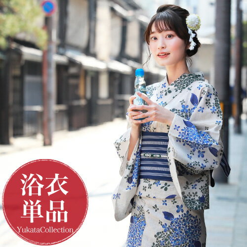 浴衣 単品 レトロ 浴衣単品 浴衣レトロ 浴衣レディース 古典柄 生成り 朝顔 レトロモダン 大正ロマン 女性【10/24 20:00~10/27 09:59まで最大2,000円OFFクーポン】浴衣 単品 レトロ 新作 高級変わり織り綿麻浴衣単品「生成り地に青・グレーの紫陽花」浴衣 生成り 紫陽花 レディース 古典柄 大人 モダン しっとり