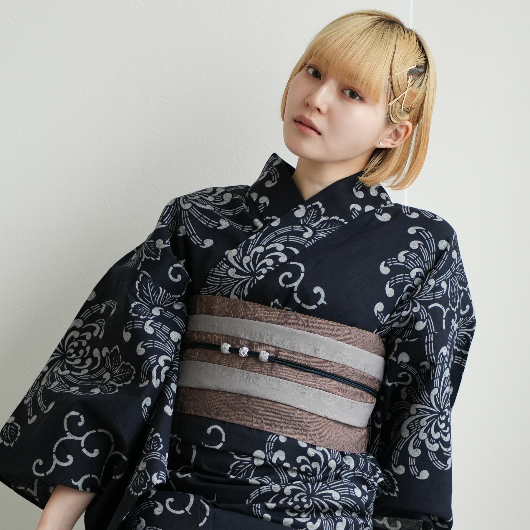 浴衣はひとりで着られる!レディース浴衣セット カンタンゆかた着付け動画公開中!【ニコアンティーク 高級変わり織 浴衣3点セット 大正浪漫ブラックに夢幻ねじり梅】みんなと違う浴衣を着よう!個性派きものブランドNicoAntiqueの2025年新作 フリーサイズ 浴衣セット(ゆかた・帯・下駄)ですぐお出かけ レトロ 国産生地 国内染色