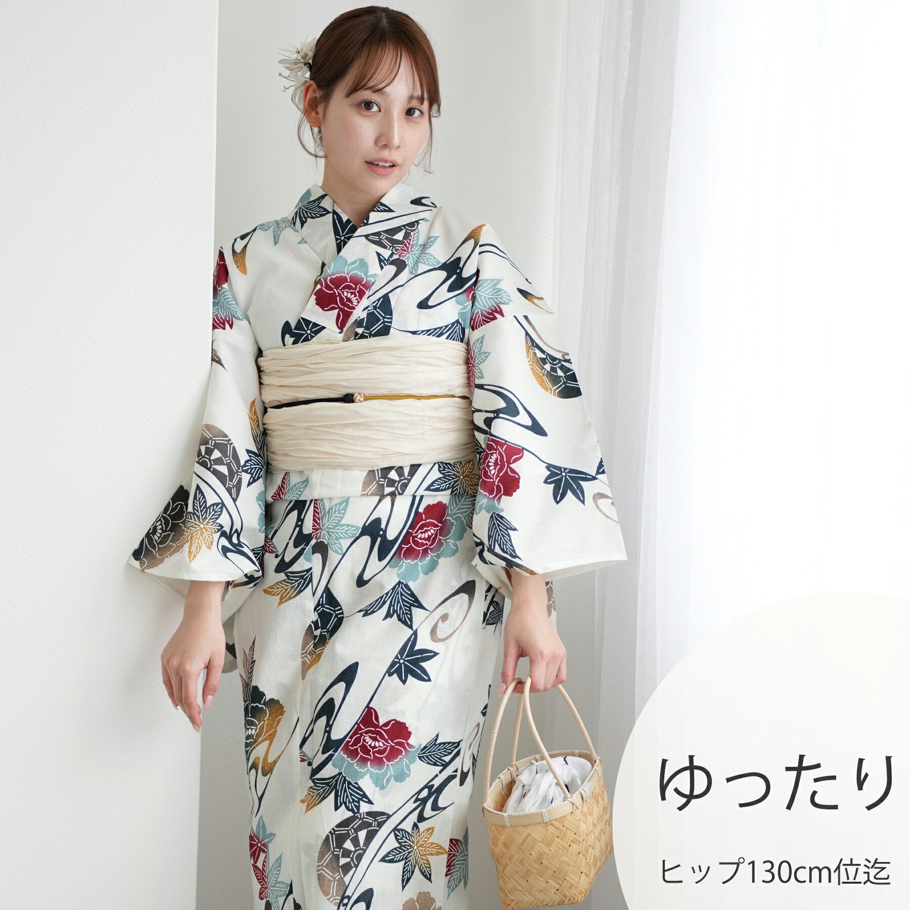 *+*+*+*+*+*+*+*+*+ ▼ひとりで簡単!自分でできる浴衣の着付け動画 ┣【ゆかたの着付け 動画】 ┣【兵児帯の結び方 動画】 ┗【半幅帯の結び方 動画】 *+*+*+*+*+*+*+*+*+ [商品画像について] ※商品画像はできる限り実物を再現するよう心掛けておりますが、お客様のモニターや閲覧環境によって大きく色味が異なる場合があります。 [商品在庫について] ※商品在庫は他店舗販売と共有しているため、更新のタイミングにより在庫切れの場合はやむをえずキャンセルさせていただく可能性があります。 ▼▼ その他浴衣セットはこちら ▼▼ ▼▼ 浴衣に合わせたい小物 ▼▼【セット内容】 浴衣・帯・下駄 ※上記以外のレースやオーガンジー飾り、帯締め等の小物類はセットに含まれません。 ※帯は手結び(ご自身で結ぶタイプ)です。 ※下駄はランダムコーディネートです(ご指定不可)。 ※浴衣は生地の裁断の位置によって柄の出方が異なります。 【素材】 浴衣:綿100% 帯:ポリエステル 下駄:桐 【適応サイズ】 3L ゆったりサイズ 適応身長 約155-165cm ヒップ130cm頃 【実寸サイズ】 身丈 約165cm・袖丈 約53cm・裄丈 約69cm 下駄:フリーサイズ(約22.5-24.5cm対応) 【原産国】 浴衣:生地 日本 / 縫製 中国 帯:中国 下駄:中国