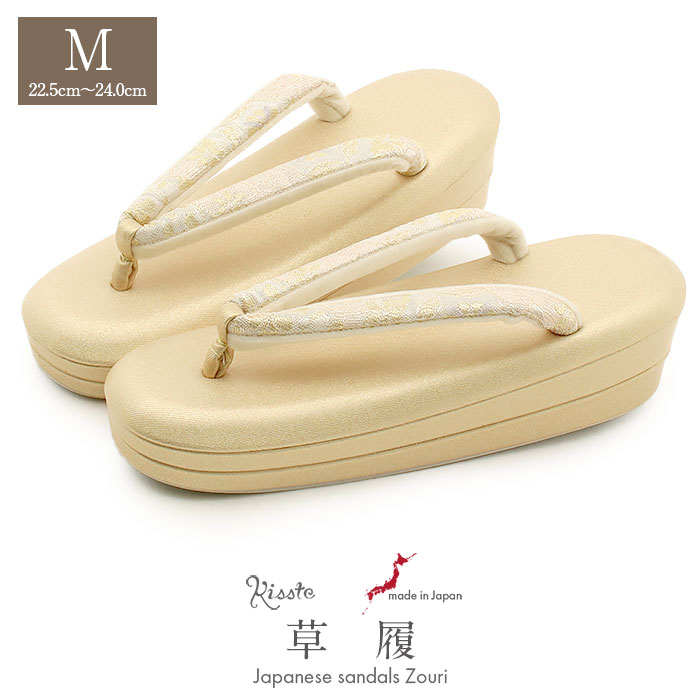 ≪在庫限り≫ 結婚式の黒留袖 色留袖や訪問着に合わせたい 草履。痛くなくて歩きやすい、初めての方にも安心の履き心地。草履 留袖用 訪問着用 レディース Mサイズ クリームシルバー 銀 金 桜 帯地 合皮 2枚芯 Hi-クッション EVA素材 日本製 痛くない 歩きやすい 女性 黒留袖 色留袖 礼装用 フォーマル 結婚式 ぞうり 草履 着物 草履単品 草履だけ