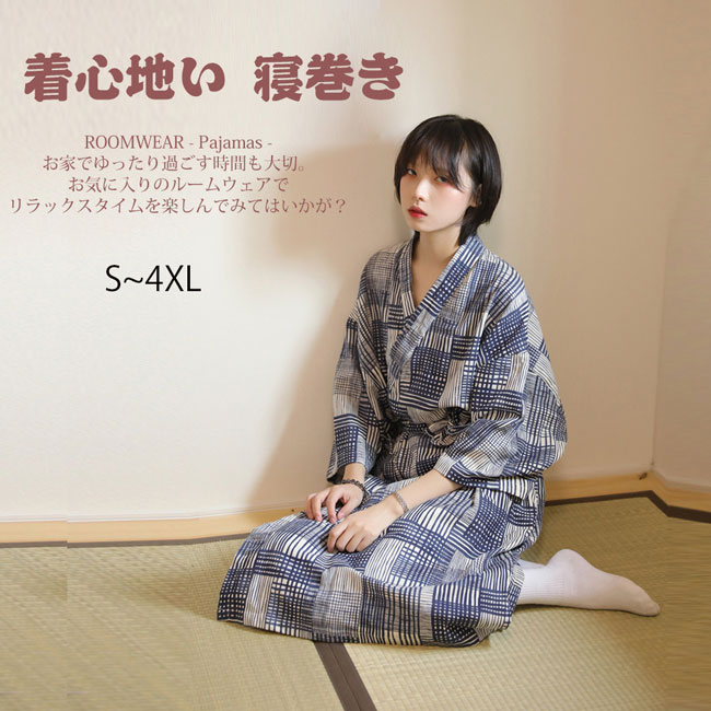 綿 ルームウェア パジャマ 寝巻き浴衣 ガウン 部屋着 お家時間綿 ルームウェア パジャマ 寝巻き浴衣 ガウン お風呂上がり バスローブ ネイビー レディース 綿 前開き 旅館 温泉 介護 通気性 涼しい 部屋着 お家時間 柔らかい 着心地いい プレゼント