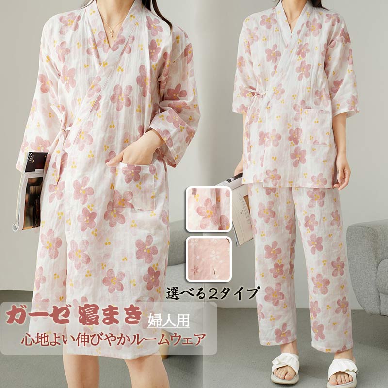 ガーゼ 浴衣 レディース パジャマ お風呂上がり バスローブ ゆかた ルームウェア お土産 プレゼント ギフト 入院 介護用【ルームソックス1点プレゼント】ガーゼ 浴衣 レディース パジャマ 100%綿 お風呂上がり バスローブ 女性用 花柄 入院 介護用 お寝間着 旅館浴衣 ねまき ゆかた ルームウェア 部屋着 ナイトウェア お土産 プレゼント ギフト 快気祝い 母の日 Mサイズ Lサイズ