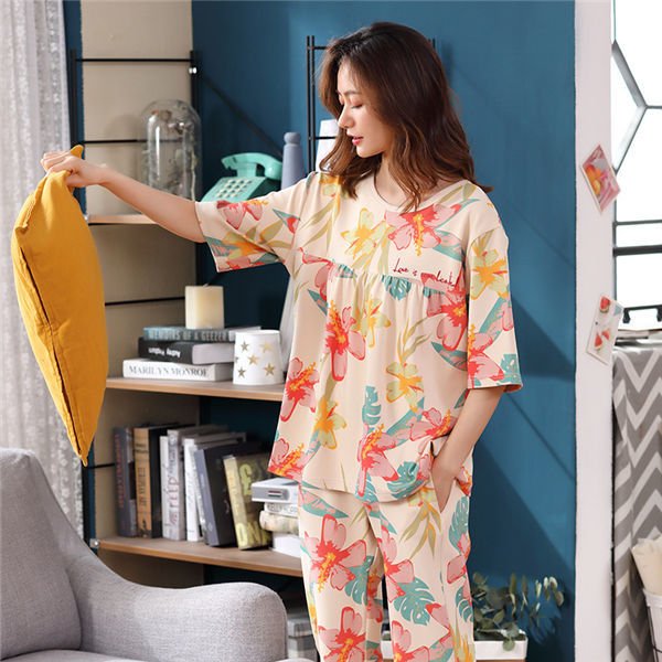 ルームウェア パジャマ レディース 上下セットルームウェア パジャマ レディース 上下セット 総柄 半袖 トップス パンツ 部屋着 ホテル 春夏用 可愛い パジャマ バレンタイン 2025 プレゼント