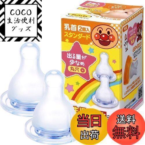 商品情報商品の説明●※アンパンマン哺乳びんの「スタンダート」タイプに対応した替え乳首です。 ●深く吸いつけるやわらか乳首です。 ●ミルク穴・空気弁のつまりや密着を防止するケアピン付きです。 ●ママのおっぱいみたいなやわらか乳首。のびーる先端部がお口にフィット。 ●赤ちゃんが吸い込む時にしなやかな先端部が伸びます。深く吸った時にはやわらかさと安心感があります。 ●3ヶ月頃からに最適なクロスカットタイプ。ミルクの出る量が多めで、吸引力に合わせてミルクが出ます。主な仕様 [本体サイズ] 本体サイズ:3.7×3.7×4.1cmbr安心の日本製シリコン乳首。br[製造国] 日本