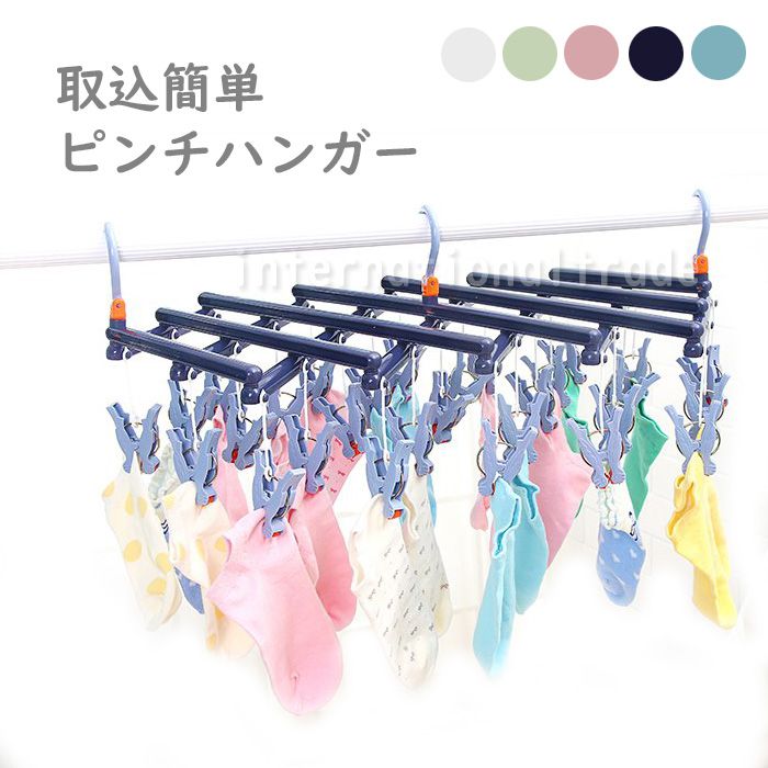 挟んだ洗濯物を引っ張ると、ピンチがゆるむ特殊な設計。一つ一つピンチを外す必要がなくサッと取りこみが完了!面倒な家事が秒速で片付く、時短ピンチハンガーです。【ランキング受賞!】 一部予約 ハンガー 取込簡単 ピンチハンガー 29ピンチ 省スペース 物干しハンガー 丈夫で安定 耐久性 屋外室内両用 シンプルデザイン 便利 時短家事 折りたたみ 省スペース