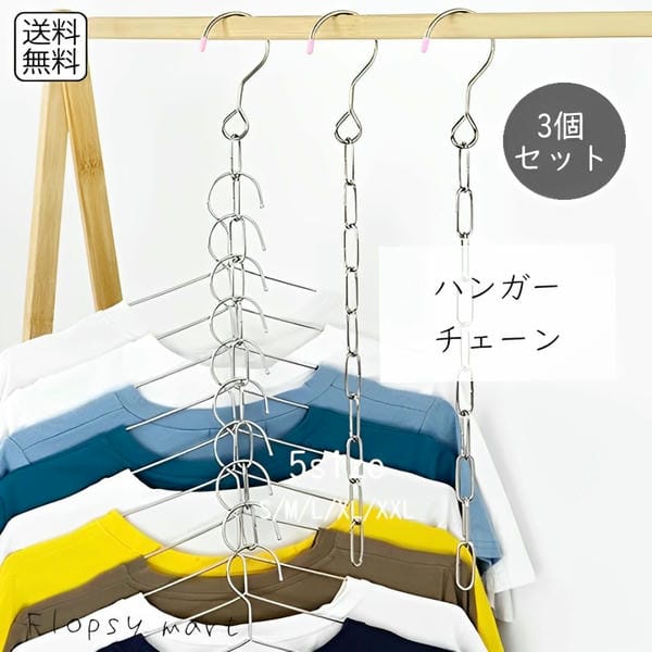 1本に10枚の衣服を掛けることができるので省スペースで効率的な収納が可能。洗濯後もハンガーのままクローゼットへ収納できるため、衣類整理の手間や折りたたみシワを防ぐことができます予約 ハンガーチェーン3本セット 物干しチェーン 洗濯チェーン 洗濯ハンガー 室内干し ベランダ干し 洗濯物干し 省スペース コンパクト ハンガーフック付き 多機能チェーン 洗濯便利グッズ ハンガーストップチェーン 強風対策