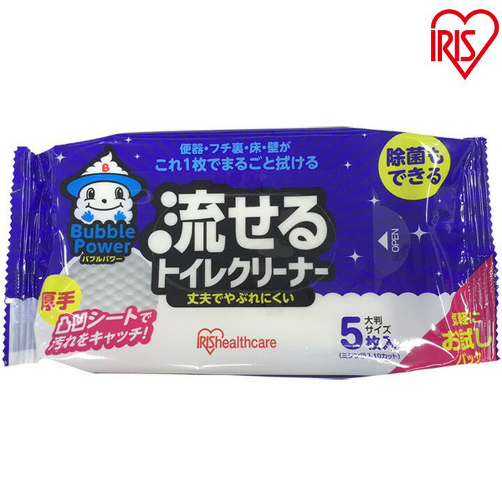 バブルパワー流せるトイレクリーナー 5枚 BP-TC5 トイレクリーナー クリーナー トイレ掃除 トイレ 除菌 流せる 大判 バブルパワー クリーナー 便器 便座 アイリスオーヤマ