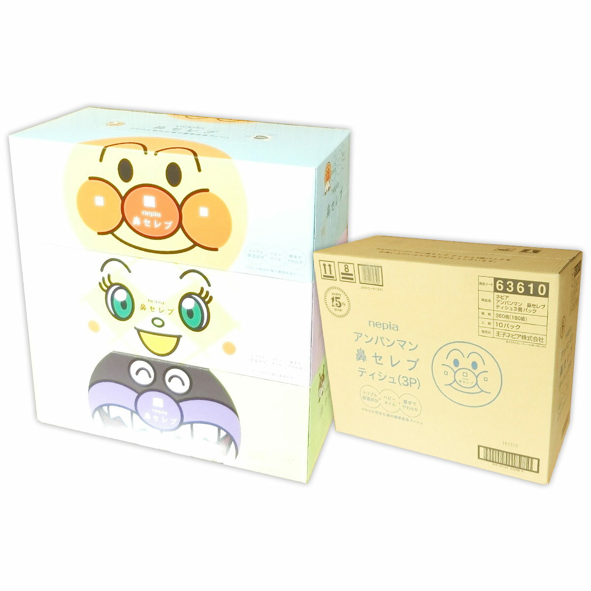 (送料無料)(ケース販売) 賢く・お得に・まとめ買い!(送料無料)(まとめ買い・ケース販売)ネピア アンパンマン 鼻セレブティシュ 3コパック 360枚(180組)(10個セット)/ 王子ネピア