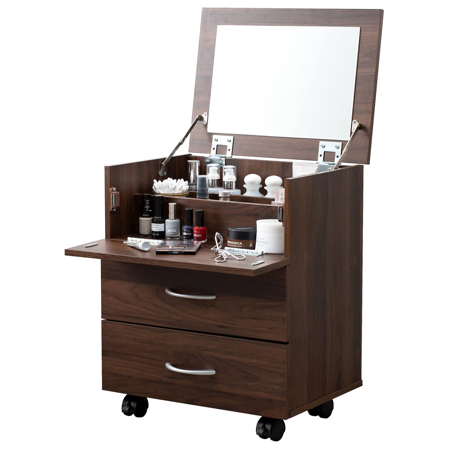 萩原(Hagihara) ドレッサー 化粧台 コスメワゴン キャスター ミラー 付き 収納 コンパクト 幅45×奥行31×高さ82cm ブラウン RUD-1830BR