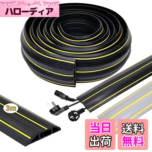 LOOBANI ケーブルプロテクター 配線カバー ケーブルカバー フロアケーブルカバー 床用配線モール 配線隠し 床のワイヤーを保護 衝撃に強い上 収納力良い 噛み防止 ソフトタイプ オフィス/家庭/PC/工場/倉庫/コンサート/道路 屋内と屋外環境に最適 (3.05M, ブラック)
