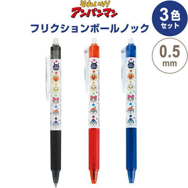 ノック式のフリクションボール三色セットです!サンスター文具 アンパンマン スマイルプラス フリクションボールノック 0.5mm 3本セット 黒 赤 青