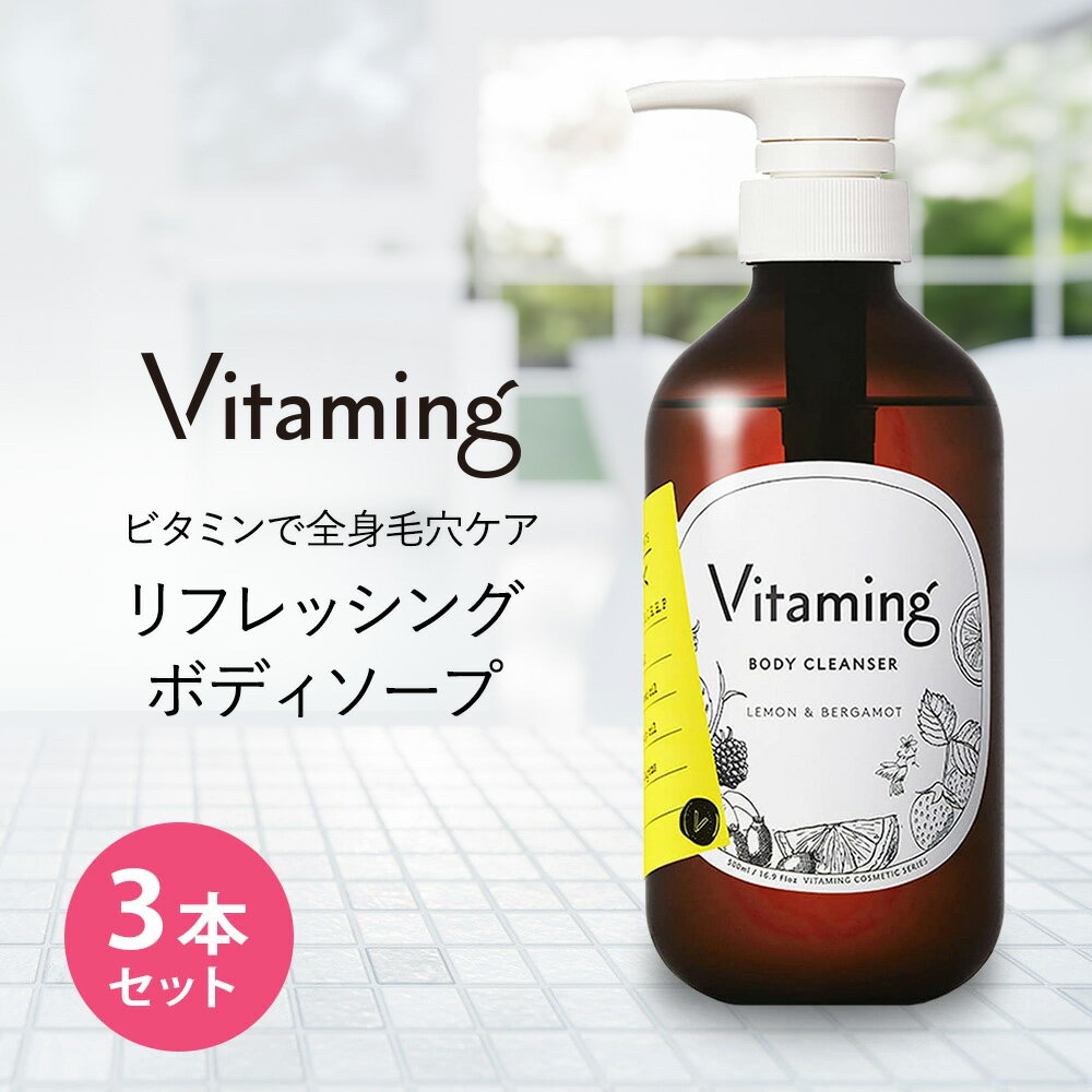 ボディソープ ボディーソープ ボディシャンプー セット いい香り いい匂い レディース 保湿【14~20日限定!P10倍!】【まとめ買い】Vitaming バイタミング リフレッシング ボディソープ 500ml 3本セット 脂性肌 乾燥肌 ビタミン レモン ベルガモット 敏感肌 泡 無添加 ボディーソープ オーガニック 女性 女性用 レディース 体臭 保湿 かわいい