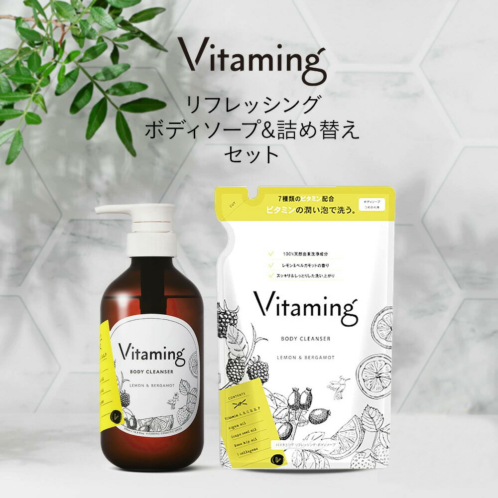 ボディソープ 詰め替え セット ボディーソープ ボディシャンプー いい香り いい匂い レディース 保湿 オーガニック 女性 女性用 体臭【14~20日限定!P10倍!】Vitaming バイタミング リフレッシング ボディソープ & 詰め替えセット | 脂性肌 乾燥肌 ビタミン レモン 敏感肌 香り ギフト 泡 無添加 詰め替え ボディーソープ さっぱり 保湿 かわいい