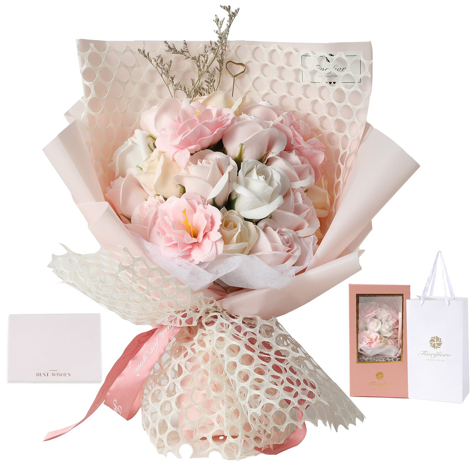 Fiorifiore ソープフラワー 花束 誕生日 造花 敬老の日 母の日 バラ 18本 女性 人気 ブーケ プレゼント 結婚祝い 退職 送別 インテリア (Fortune)
