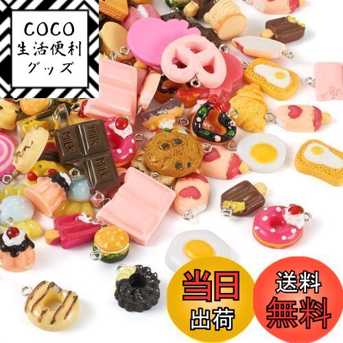 【送料無料】Beadthoven 約100個/箱 混合様式 樹脂ペンダント 模造食品チャーム キュートなスタイル キャンディー ドーナツ チョコレート クッキー フェイク 食べ物 チャーム モデル デコパーツ 飾り用 アクセサリーパーツ DIY材料 ハンドメイド 手芸 手作り クラフト用品