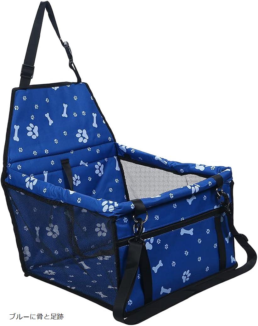 キッソス KISSOS互換品車用 ペット用 ドライブベッド ボックス 犬 猫 ドライブケージ 飛び出し防止 ブルーに骨と足跡 (ブルーに骨と足跡)