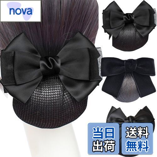 【送料無料】3個セット シニヨンネット バレッタ ネット付き,BetterJonny リボン付きネット ヘアネットリボン おだんご ネット 髪 お団子ネット 髪 ネット 黒 大きめ おしゃれ かわいい レディースヘアアクセサリー 黒 ブラック リボン