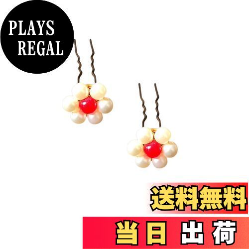 【送料無料】EZ PEACH 髪飾り パール Uピン お花 キラキラ 髪留め 水引 手作り ヘアアクセサリー レディース 結婚式 パーティー 入学式 お呼ばれ 卒業式 和装 成人式 振袖 浴衣 2本セット ヘアアクセサリー (ウメ/赤い)