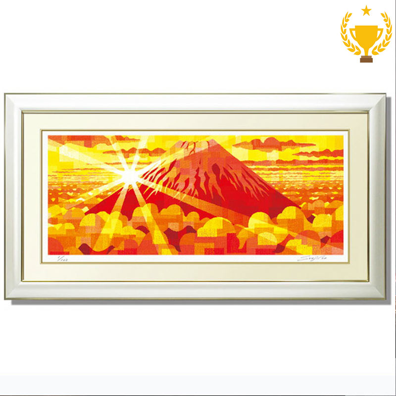 富士山 最高品質 玄関 部屋に飾る絵(アート) 風水 開運吉祥 |【マラソン限定クーポン】 【楽天ランキング1位獲得】【黄金赤富士】絵画 額入り インテリア おしゃれ モダン 壁掛け インテリアアート 版画「沸々と湧き上がるパワー!朝日に照らされる富士のごとく」秀作 母の日