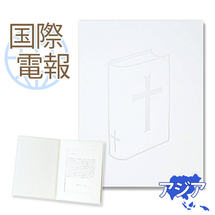【主な用途】電報・弔電・お悔やみ電報・国際電報・海外電報・海外の葬儀 【お通夜・ご葬儀などのお供え物】電報・弔電・お悔やみ電報・通夜・通夜式・葬儀・葬式・前夜式・告別式・ミサ・社葬・法事・法要・弔事・お供え・御供物 【法事・法要などのお供え物】供花・仏花・お供え・献花・枕花・訃報・法事・年忌法要・法要・四十九日・一周忌・弔事・年忌・命日・お悔やみ・慰霊祭・新盆・初盆・喪中見舞い・喪中はがきが届いたら・ペット葬お悔やみ電報 祈り 【国際エクスメール アジアあて専用】 323 祈り Embraced by the hand of God~神の手に抱かれて 悲報に接し、悲しみにたえません。残された遺族の方に希望と励ましを見出し、必ず恵みや救いがあることを伝えます。純白の生地にデボス(押し上げ)加工で立体的に描かれた聖書が、神聖な雰囲気を与えるカードです。 カードサイズ 縦240mm×横180mm×厚さ6mm 表紙 ヨーロピアンシルキー 加工 デボス 中面 タント N-8 (白) 地域 お届け国名(名宛国) 配達日数 海外加算料 アジア インド / インドネシア / ベトナム / 韓国 / カンボジア / シンガポール / スリランカ / タイ / 台湾 / 中国 / ネパール / パキスタン / バングラデシュ / フィリピン / ブータン / ブルネイ / 香港 / マカオ / マレーシア / モルディヴ / モンゴル / ラオス / ミャンマー 2~10日後(国別配達日数を参照) 2,600円 国別配達日数 ※国別配達日数は必ず配達できる日数ではなく、標準的な配達日数です。土日・祝日にかかる場合や、税関検査の遅れなどの要因により、配達が遅延することがあります。また、季節的な要因(クリスマス・新年・冬季など)や天災・テロなどの事情で遅れることもありますので、ご了承ください。