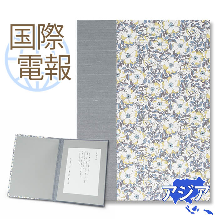 中国・韓国・台湾などアジア各国へお悔やみ電報・弔電をリーズナブルにお届けします 力強く繊細な草花が、励ましの気持ちをお伝えします国際電報 弔電 お悔やみ 布張りカード リバティプリント電報 スウィム・ダンクレア【海外 アジアあて専用】送料無料 海外電報 弔電 海外葬儀 訃報 海外在住 ビジネス 取引先 現地法人 海外支店