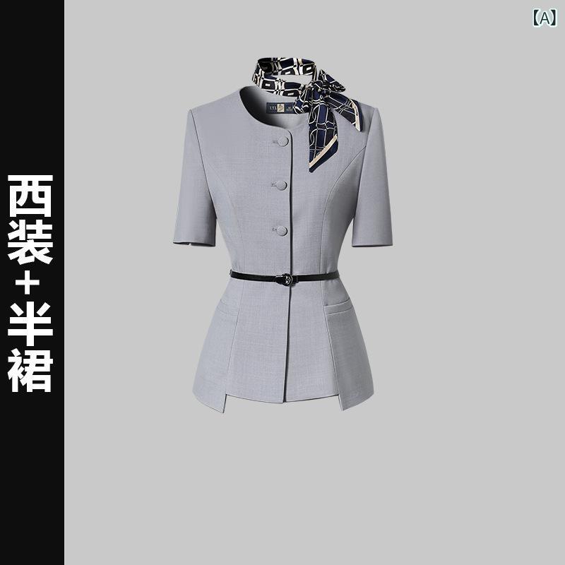 【予約販売5~12営業日での発送】グレー 職業 スーツの 女性 夏 薄手 フロントの 工 装 販売 部の 宝石 店の 作業服の スーツの スカート