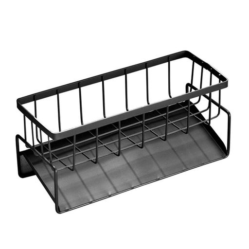 スポンジラックシンク排水ラックステンレス鋼シンク収納ラックパンチフリーカウンタートップぼろ鋼球収納ラックスクラバーラックキッチン用品(黒色の茎なし)