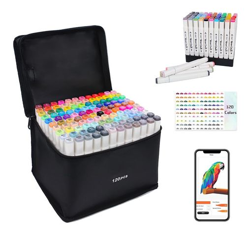 Vokiulerアートマーカーアルコールマーカーセット120色イラストマーカーブレンダーペン油性カラーペンセット太細両端画材コミック用プレゼント