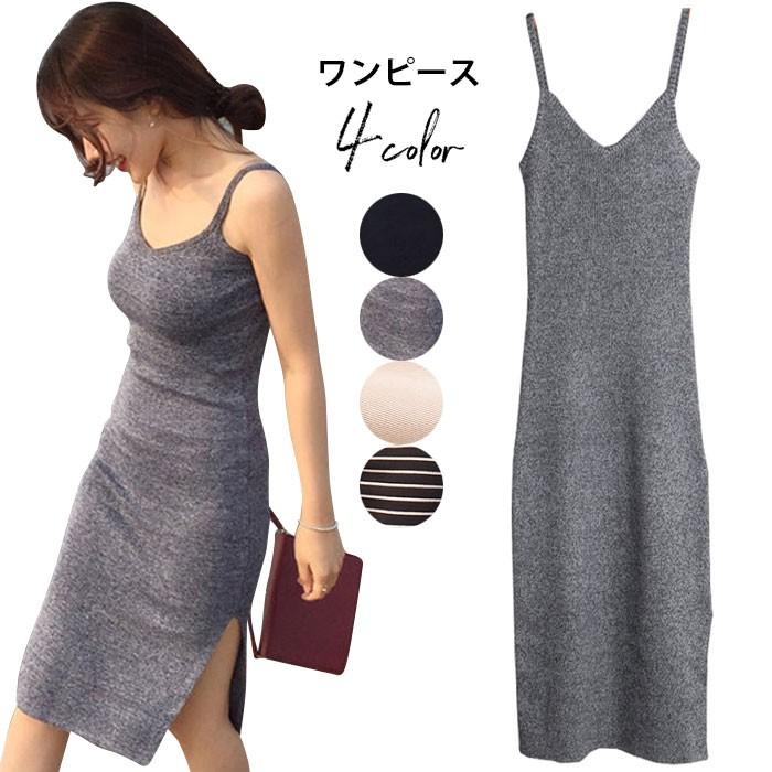 美シルエットを叶うキャミソールワンピースワンピース レディース キャミソールワンピース ミディアムワンピース Vネック 伸縮性 ニット スリット入り お洒落 インナー シンプル セクシー バレンタイン 2023 プレゼント