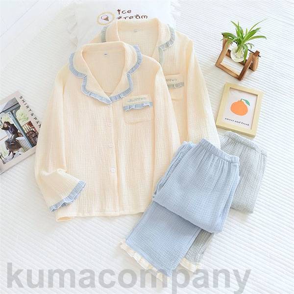 パジャマ レディース 上下 セット 上下セット セットアップ 2点パジャマ レディース 上下 セット 上下セット セットアップ 2点セット コットンパジャマ 女性 長袖 春 夏 秋 綿100% 前開き ウエストゴム 薄手 Vネック ダブルガーゼ ルームウェア 可愛い 長ズボン ロングパンツ トップス ナイトウエア
