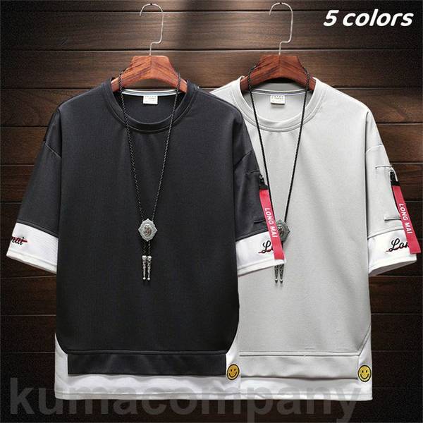 Tシャツ tシャツ メンズ 半袖Tシャツ 半袖 五分袖 重ね着風 レイTシャツ tシャツ メンズ 半袖Tシャツ 半袖 五分袖 重ね着風 レイヤード風 丸首 クルーネック ビッグシルエット 夏物 夏 プルオーバー サマー おしゃれ 無地 快適 通気性 夏服
