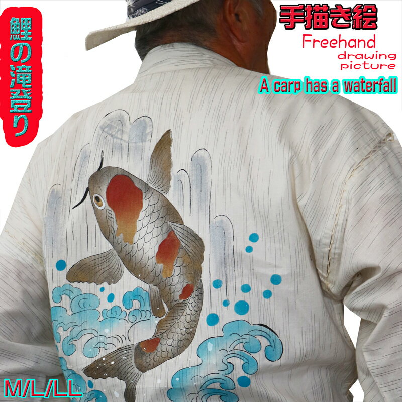 !!鯉の滝登り 手描き絵 プリントとは違う味わい手描き京都の手描き絵職人が心を込めて作った鯉の滝登りの甚平 鯉の滝登り 手描き絵 メンズ 男性 プレゼント おしゃれ 父 父親 お誕生日 高品質素材 お祝い じんべい ルームウェア