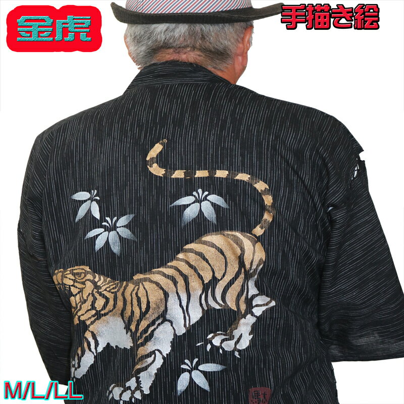 !!金虎 手描き絵 プリントとは違う味わい手描き京都の手描き絵職人が心を込めて作った金虎の甚平 手描き絵 メンズ 男性 プレゼント おしゃれ 父 父親 お誕生日 高品質素材 お祝い じんべい ルームウェア