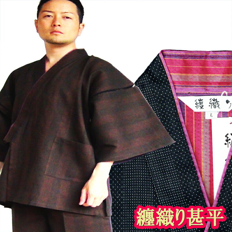 火消しの生地で作った!!纏織りの甚平!!贈り物に 纏織り メンズ 甚平 M L LL プレゼント おしゃれ 誕生日 お祝い じんべい