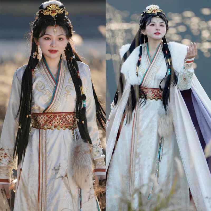 【予約販売5~12営業日での発送】マント レディース 韓服 ショール 防寒 衣装 女性用 ベルベット 暖かい 刺繍 豪華 ガウン 秋冬 セットアップ 裏起毛 もこもこ フェイクファー ステージ パフォーマンス 写真 撮影 コスプレ おしゃれ 赤 白