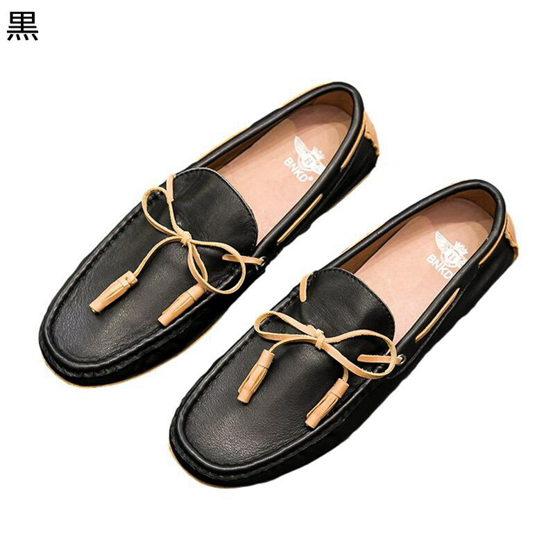 ローファー モカシン メンズ スリップオン レザー リボン タッセル付き 蝶結び 本革 ドライビングシューズ カジュアルシューズ 紳士靴 男性用 ローヒール 正式 四季適用 メンズ靴 走れる