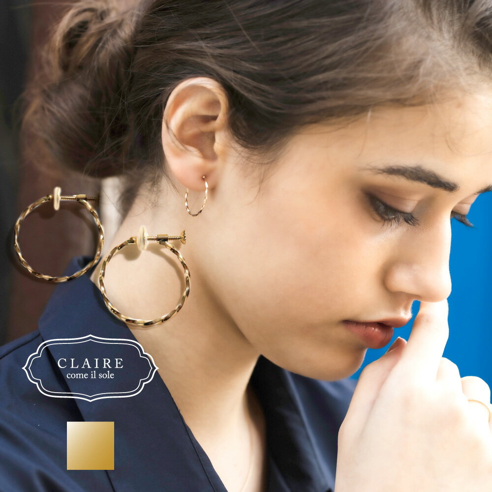 CLAIRE クレア プレゼント ギフトノンホールピアス 10k イヤリング フープ 揺れる スパイラル 10金 かわいい おしゃれ 大人可愛い シンプル 可愛い